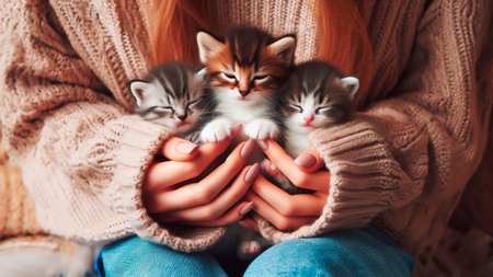 Intimate close-up digital artwork rendered with exquisite soft textures, warm candlelit ambiance, and tender emotional depth for a cozy, affectionate vibe. Ideal for commercial applications including greeting cards, pet product ads, social media graphics, lifestyle blogs, and family-oriented prints targeting cat enthusiasts. Artistic style delivers versatile ... AI-generated digital illustration. AI-generated illustration.