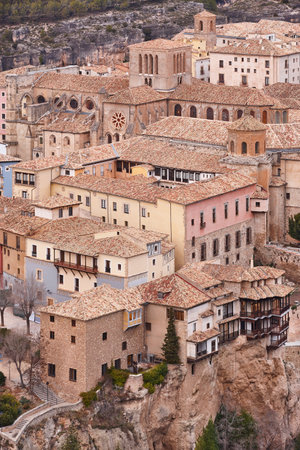 Traditional antique buildings in Cuenca unesco heritage old town. Spain