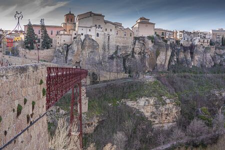 Metallic bridge over the gorge of the Huecar River that gives pedestrian access to the historic city of Cuenca. europe spain