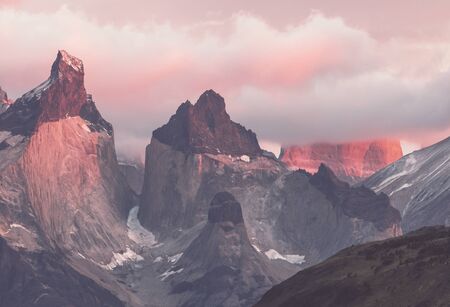 Peaks of Cuernos del Paine at sunrise at Torres del Paine national park, patagonia, Chile