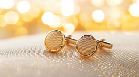 Stunning gold cufflinks set against a soft fabric background with a bokeh effect, ideal for showcasing formal fashion and elegant accessories.