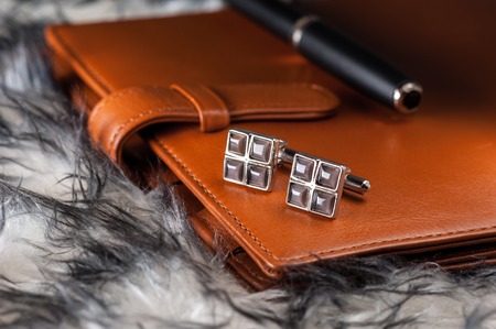 closeup shiny cufflinks with gemstones, accessory for men