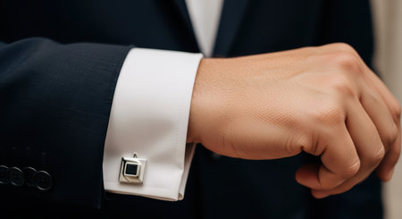 Close-up of male hand in elegant suit with stylish cufflinks