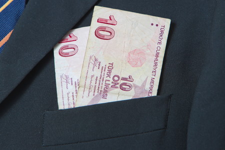 Money, currency of Turkey, lira banknotes of various denominations. Turkish money as a financial background for your design