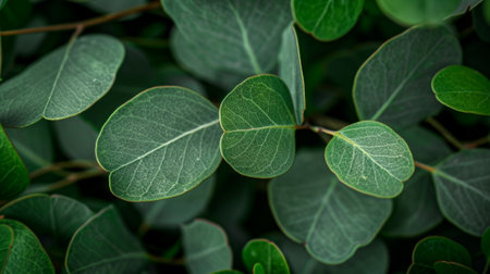 Lush Green Leaves with Intricate Veins Stand Out Against a Dark Background in a Dense Forest Scene