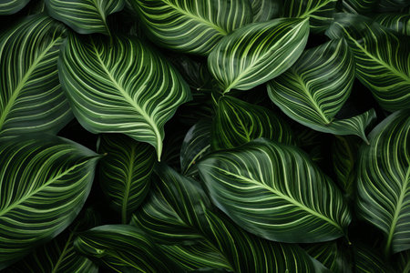 This image showcases a collection of unique, striped leaves, dominated by green and white hues. The composition focuses on the natural patterns, with overhead lighting. Its textures and contrasts are suitable for diverse applications, ranging from editorial content to creative projects.