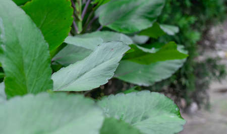 close up of big green leaves in garden