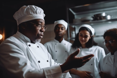 Diverse of chefs cooks working in kitchen of fine restaurant during workshop kitchen student school.AI Generative.