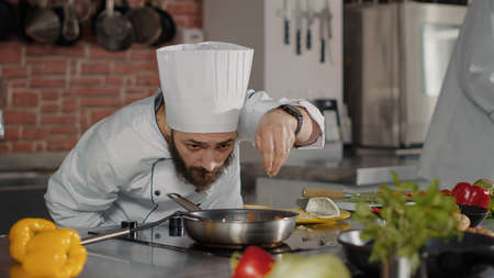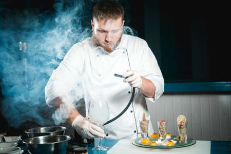 chef cooking, Chef preparing food, Chef decorating dish in the kitchen