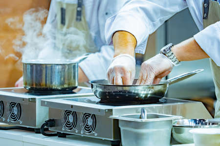 Chef cooking food in the kitchen, Chef preparing food