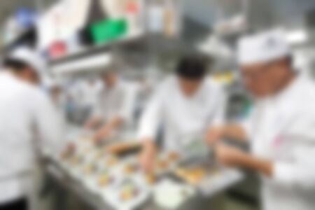 Blurry of Chef in hotel or restaurant kitchen cooking for party