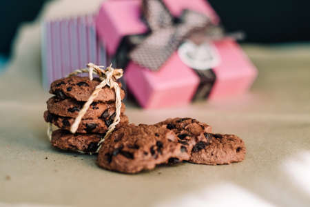 A cozy scene featuring homemade cookies and beautifully wrapped gift boxes, ideal for celebrations. Perfect for food lovers and festive occasions.