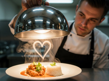 chef cooking, Chef preparing food, Chef decorating dish in the kitchen