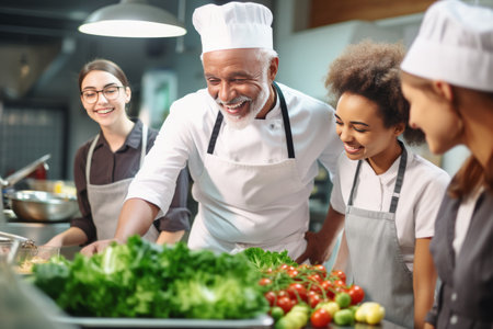 Mastering Culinary Artistry: A Diversified Male Chef Educating Students with Fresh Vegetables in a V
