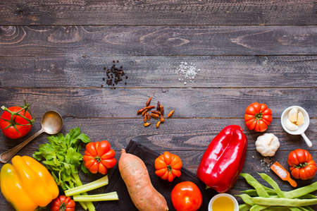 Colorful vegetables mix, ingredients and raw and organic vegetarian food