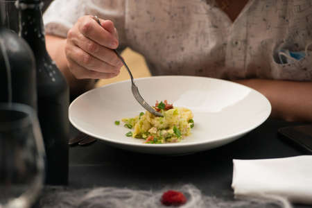 The food in the restaurant. Food styling and restaurant meal serving. Gourmet restaurant menu concept. Creative stylist restaurant