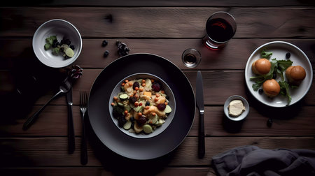Gourmet salad plate with fresh vegetables and tomato generated by artificial intelligence