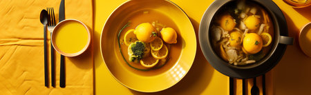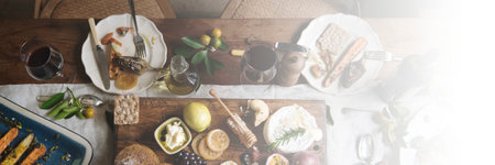 A table with food, top view, AI Generative Illustration Graphic Design Art Icon Symbol Sign Logo