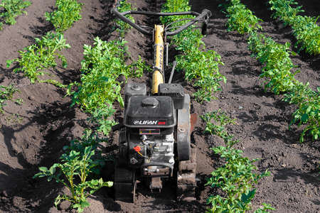 Agromashine banzin motor cultivator. Bashkortostan, Russia - 12 June, 2021.