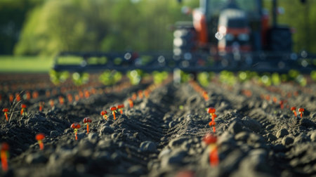 A sensorequipped plow traversing a field measuring soil density and moisture levels to create the perfect environment for planting