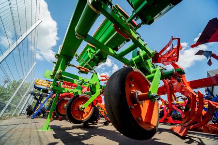 Modern agricultural machinery and equipment. Industrial details. Agricultural exhibition