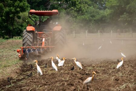 Farmers use the tractor to plow the area to cultivate the crab.