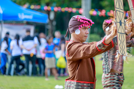 Thoet Thai, Chiang Rai - THAILAND, December 12, 2018 : Group of Shan or Tai Yai (ethnic group living in parts of Myanmar and Thailand) in tribal dress do native dancing in Shan New Year celebrations.