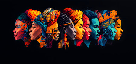 Vibrant artwork depicting four African-American women's profiles, in rich and diverse colors, symbolizing empowerment and culture during Black History Month.