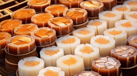 Sweet treats specially enjoyed during New Year celebrations, adding a delightful touch to the festive atmosphere and indulging in seasonal joy.AI Generated
