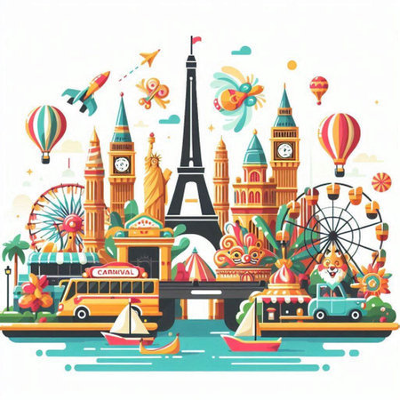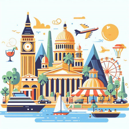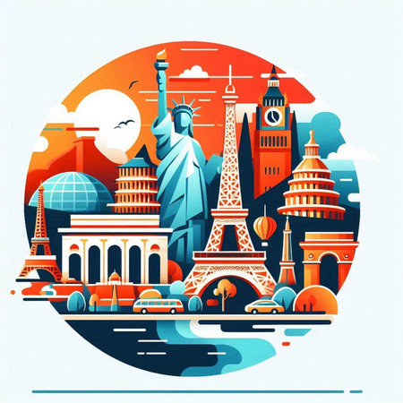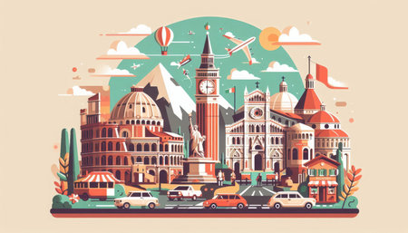 Traveling around Europe bright colorful illustration content created with generative AI software