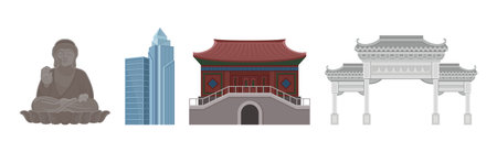 Chinese Country Landmark and Attribute Vector Illustration Set