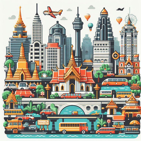 Cityscape of Bangkok, Thailand. Travel and tourism. Vector illustration