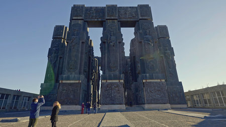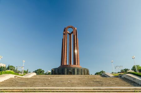 NIS, SERBIA - JUNE 16, 2019 Big monument to the liberators of town Nis in Serbia with blue cloudy sky in Nis, Serbia