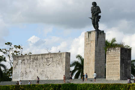 Santa Clara, Cuba - 8 january 2016: people visiting Che Guevara statue and the mausoleum in Revolution Square. Che participated in the Cuban revolution and the organization of the Cuban state