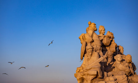 Beijing / China - September 27, 2014: The Monument to the Peoples Heroes, in the Tiananmen Square in Beijing, dedicated to veterans of Chinese wars 1842–1949.