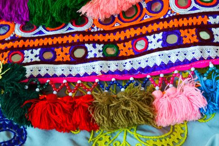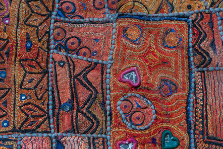 Indian patchwork detail, traditional handicraft handmade. decorative fabrics.