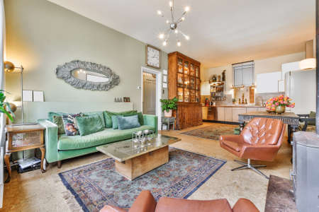 Amsterdam, Netherlands - October 6, 2020: Elegant and spacious living room with beautiful furniture