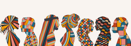 Side-view Silhouettes of people from Various Cultures. People Diversity. Anti-racism Concept for Racial Equality. Social Inclusion. Gender Equality.Multicultural People.Community