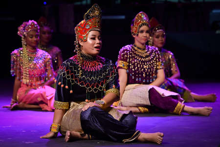 KUALA LUMPUR, MALAYSIA 18 August 2017: Cultural dance performance Mak Yong. Traditional clothing performing a dance called Mak Yong, a traditional Malay dance only found in Kelantan.