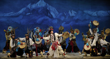 CHENGDU - SEP 28: chinese Tibetan ethnic dancers perform on stage in the 6th Sichuan minority nationality culture festival at JINJIANG theater.Sep 28,2010 in Chengdu, China.