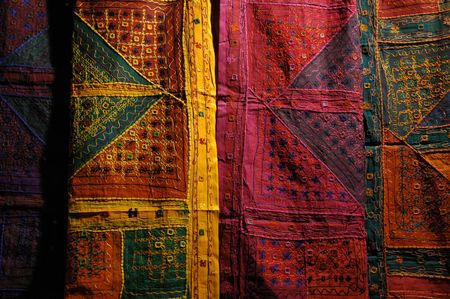 Indian patchwork detail, traditional handicraft handmade. decorative fabrics.