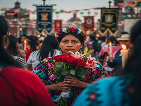 Colorful Indigenous Festival Celebrates Traditional Clothing and Cultures Outdoors generated by artificial intelligence