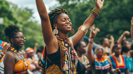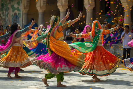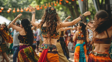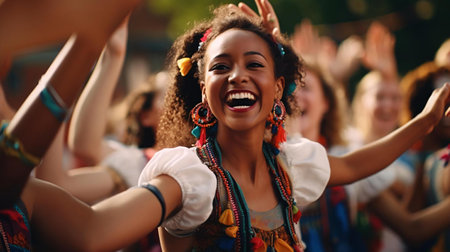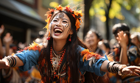 Colorful traditional festival celebrates cultures with young adults and females generated by artificial intelligence