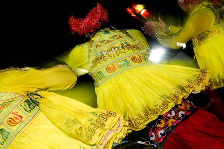 Out of focus glimpses of traditional dancers evoking a sense of timelessness
