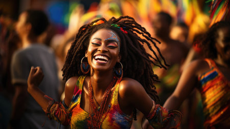 Vibrant Movement: Caribbean Calypso Dancer Radiates Joy and Energy