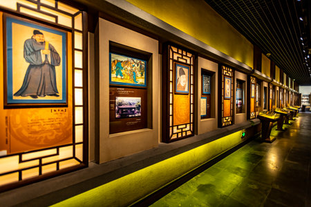Ancient Senior Chinese officials dressing with they costumes of Qing Dynasty in Jiangnan Imperial Examination Centre (North), near the Confucius Temple Scenic Area at Qinhuai River, Nanjing, China