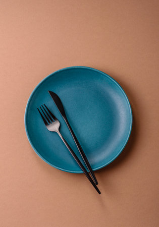 Empty blue plate on yellow and blue background