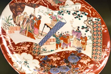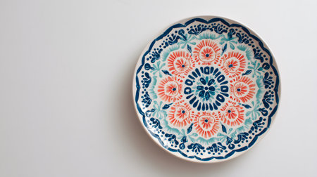 pattern on hand-painted ceramic plate. Copy space