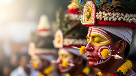 Face Paint and Accessories Focus on a performer in a s costume with colorful face paint and ornate headdress emphasizing the cultural significance and artistic expression in the.