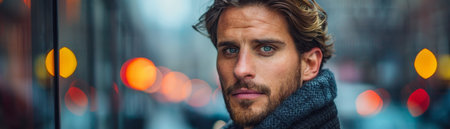 Portrait of a young man with a beard on a city street